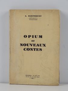 BARTHOUET (A.) (Bonmat) - Opium et nouveaux contes - Hanoi ; Imprimerie Le-Van-Tan, 1932 - 1 volume In-12° broché avec l’avis au lecteur sur petit feuillet séparé - 274 [3] pages - Bel état - Rare.