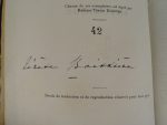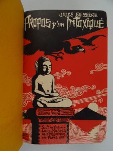 Belle reliure de l’époque veau roux orné d’1 décor asiatique polychrome et or composé de grenouilles, d’insectes et de bouquets dans des vases (mors frottés) - Dos lisse orné à l’identique titré or (coiffes frottées) - Couvertures (la 1ère illustrée couleurs par Geo Dorival en 2 états) conservées - Ex-libris gravé du Baron de Gissac, château de Peyre et ex-libris de Christian Fouanon gravé par Hélène Hué, représentant un fumeur d’opium allongé dans un décor de fleurs de pavot et de livres, surmonté de l’œil de l’ophtalmologiste, signé au crayon et numéroté 6/100 - Très bon exemplaire numéroté 42 sur les 120 sur vergé de Hollande réservés aux souscripteurs, signé par Thérèse Boissière et truffé d’1 carte postale de l’inauguration du monument Jules Boissière.