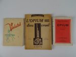 lampe et d’1 pipe au 2nd plat (couvertures très légèrement salies) - Illustrations sur bois in texte en 1 ton de M. Loesch - Rare recueil de 25 poèmes autour de l’opium édités de façon anonyme - BRUNNGRABER (Rudolf) - Opium - Paris ; Fernand Sorlot, collection Les Maîtres Étrangers, [1943] - 1 volume In-12° broché - CUISY (Paul) - L’opium dieu cruel - Paris ; Les Petites Annales, 1949 - 1 plaquette In-8° agrafée (de petites déchirures sans perte, couverture légèrement salie) - Illustrations in texte de André Millot.