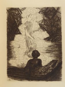 chiffon, 18 lettrines et 17 culs-de-lampe dessinées et gravés sur cuivre par Camille Roche - Reliure postérieure demi-chagrin marine - Contre plats et gardes marbrées - Dos à nerfs titré or - Couvertures et dos brun, or et noir conservés (frottements au dos, petit trou au 2nd plat) - Ex-libris de Christian Fouanon gravé par Hélène Hué, représentant un fumeur d’opium allongé dans un décor de fleurs de pavot et de livres, surmonté de l’œil de l’ophtalmologiste, signé au crayon et numéroté 97/100 - Édition hors commerce numérotée sur Arches (H. C. O sur les 25, tirage total : 175) - Bon exemplaire.