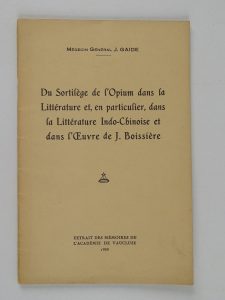 GAIDE (J.) - Du sortilège de l’opium dans la littérature et, en particulier, dans la littérature Indo-Chinoise et dans l’œuvre de J. Boissière - Avignon ; Extrait des Mémoires de l’Académie de Vaucluse, 1938 - 1 plaquette In-8°...