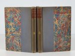 verso de la 2ne garde, beau portrait de l’auteur au fusain, non signé, en regard de la 1ère couverture conservée, 1 portrait gravé contre collé sur papier fort et rehaussé à l’aquarelle, légendé Monselet au crayon, en regard du titre à l’encre rouge et noire, 1 portrait à l’encre et crayon de couleurs légendé « Monselet par Léandre » figurant Monselet en ange fumant 1 pipe sur papier kraft, monté postérieurement entre le titre la préface - Au tome II : 1 gravure contre collée au 1er contre plat, gravure montée en noir intitulée : Souvenir - un bout de table - Banquet de la Girondine - 30 mars 1873 sur laquelle Monselet est caricaturé à table lors d’1 banquet, frontispice gravé de l’ouvrage Poésies complètes, portrait de Desforges face au chapitre qui lui est consacré, dans médaillon gravé en sépia sur chine, envoyé à Monsieur Mar ( ?) et signé au crayon (signature illisible), petit article de presse consacré à Charles Monselet, contre collé sur papier rapporté après la 2nde couverture - Reliure de l’époque demi-percale grise à la bradel (coins émoussés) - Dos ornés et datés or (coiffes un peu molles et quelque peu frottées) - Pièces de titre toile brune - Ex-libris gravé : De la bibliothèque de Charles Monselet au tome I, le même contre collé sur papier fort moderne séparé au tome II - Bon exemplaire de l’auteur en édition originale unique, enrichie par la suite, de ces études sur les petits maîtres du XVIIIème siècle dont Grimod de la Reynière.