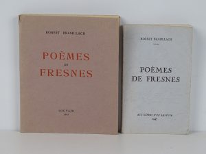 BRASILLACH (Robert) - Ensemble de 2 versions des Poèmes de Fresnes : Poèmes de Fresnes - Louvain ; Sans nom, 1945 - 1 volume grand In-12° en feuilles sous couverture rempliée - Bon exemplaire numéroté sur vélin (n°199 sur 450, tirage...