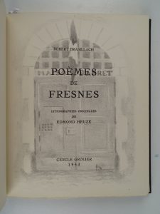 BRASILLACH (Robert) - Poèmes de Fresnes - Sans lieu ; Cercle Grolier, 1953 - 1 volume In-4° - 29 lithographies originales dont 28 in texte et 1 à pleine page de Edmond Heuzé - Reliure postérieure box noir signée Sophie Charlot sous emboîtage...