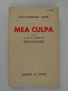 CÉLINE (Louis-Ferdinand) - Mea Culpa, suivi de la Vie et l'œuvre de Semmelweis - Paris ; Denoël et Steele, 1937 (mention de 15ème édition) - 1 volume In-12° broché - Bon exemplaire.
