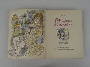 volume In-12° - Reliure de l’époque demi-chagrin vert à coins - Couvertures (petite mention manuscrite sur la 1ère) et dos conservés - Dos à nerfs orné et titré or (uniformément passé) - Bon exemplaire en édition originale numérotée sur vergé Lafuma - L’ingénue libertine - Sans lieu ; Aux Éditions Terres Latines, sans date - 1 volume In-8° broché sous couverture à rabats illustrée au 1er plat - Aquarelles hors texte rehaussées au pochoir de Gaston Barret - Bon exemplaire numéroté sur alfa.