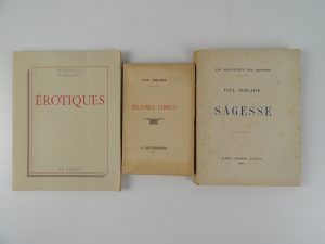 [EROTICA] - [Ensemble de 3 volumes :] VERLAINE (Paul) - Œuvres libres - A Eleuthéropolis, 19.. [vers 1915] - 1 volume In-12° broché sous couverture rempliée - Exemplaire justifié, non numéroté - RIMBAUD (Arthur) - VERLAINE - Érotiques -...