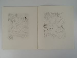 (1 petite fente partielle à la 2nde charnière) et emboîtage à l’identique bordé de vert (légèrement sali et fendu partiellement) - 16 lettrines sur bois sur fond vert et 19 pointes-sèches originales en noir hors texte de Roger de Valerio - Bon exemplaire numéroté sur vélin de Rives BFK (n°138 sur les 200, tirage total : 260).