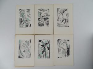 [ESTAMPES] - FOLLIETTE (E.) - Suite de 20 planches In-8° en feuilles en 2 tons sur vélin BFK de Rives ayant servi à illustrer Les Fleurs du Mal de Charles Baudelaire aux éditions genevoises Éditions d’Art Albert Skira, en 1945 - Bon état en...