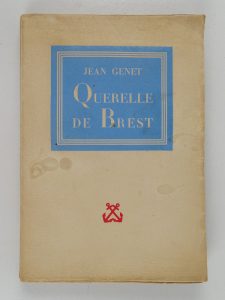 GENET (Jean) - Querelle de Brest - Sans lieu ; Sans nom, [1947] - 1 volume In-4° étroit broché sous couverture avec titre dans bannière bleue et petite vignette de 2 ancres rouges au 1er plat (légèrement taché) - 249, [2] pages - Ex-libris de...