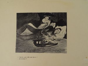représentant un fumeur d’opium allongé dans un décor de fleurs de pavot et de livres, surmonté de l’œil de l’ophtalmologiste, signé au crayon et numéroté 24/100 - Bon exemplaire.