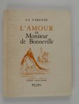 LA VARENDE (Jean de) - L’amour de Monsieur de Bonneville - Paris ; Plon, [1955] - 1 volume In-8° broché sous couverture rempliée illustrée au 1er plat, emboîtage (celui-ci un peu piqué) - Lithographies en couleurs et dessins in texte de...