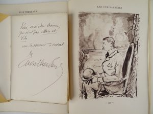 commerce numéroté sur vergé de Rives (n°XLIX sur LV) enrichi d’1 envoi autographe signé de Montherlant à la 1ère garde blanche - Les Célibataires - Paris ; Flammarion, [1944] - 1 volume In-8° broché sous couverture rempliée - Illustrations in et hors texte en noir de F. M. Salvat - Très bon exemplaire numéroté sur vélin.