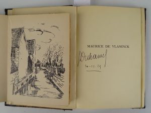 l’époque demi-chagrin noir à coins (2 coins émoussés) - 1ère couverture conservée - Dos à nerfs orné et titré or - Bon exemplaire en édition originale numérotée sur vélin teinté d’Annecy (n°84 sur 850, tirage total 875) - Signature autographe de Georges Duhamel et date du 30.11.29 au faux titre - REUILLARD (Gabriel) - Grasse Normandie - Paris ; André Delpeuch, 1926 - 1 volume In-8° broché (couverture légèrement salie) - 75 dessins inédits in et hors texte de Maurice Vlaminck (dont 8 hors texte) - Bon exemplaire.