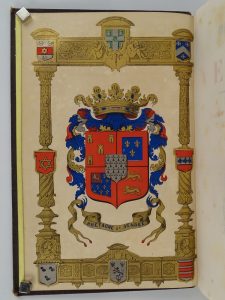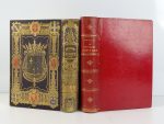 hors-texte dont cartes, planches de costumes et planches d’armoiries bretonnes en couleurs, illustrations sur acier in et hors texte en noir par MM. A. Leleux, O. Penguilly, T. Johannot - Reliure XIXème siècle postérieure cuir de Russie cerise (mors et coins frottés, de petites épidermures et griffures aux plats, charnières fendues) - Couvertures gravées conservées - Dos à nerfs orné et titré or (légèrement frotté) - Tranches dorées - Ouvrage enrichi d’1 envoi autographe signé de Pitre Chevalier au faux titre à l’Abbé Dandé et relié avec : 1 lettre autographe signée de Pitre Chevalier datée du 28 mars 1848 sur 3 pages In-8° et dans laquelle l’auteur présente son ouvrage à l’abbé Dandé - Bretagne et Vendée. Histoire de la Révolution française dans l’ouest - Paris ; W. Coquebert, [1844] - 1 volume In-4° - Des rousseurs éparses, parfois prononcées, quelques feuillets jaunis - Titre frontispice polychrome, vignette au titre, carte et 7 planches d’armoiries en couleurs, illustrations sur acier in et hors texte en noir par MM. A. Leleux, O. Penguilly, T. Johannot - Reliure éditeur cartonnage polychrome (Lenègre rel., plaque de Liebherre) aux armes de Bretagne et de Vendée (coins émoussés) - Dos lisse à l’identique (coiffes élimées) - Tranches dorées.