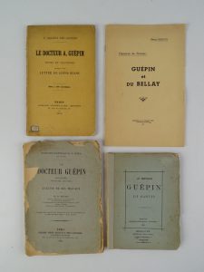 détaché avec manques, 2nd plat et dos manquants) - M. L. P. - Guépin de Nantes. Un Républicain Français - Nantes ; Imprimerie du Commerce, 1885 - 1 plaquette In-12° brochée (dos renforcé, de petites rousseurs à la couverture) - GALLERY DES GRANGES (P.) - Le Docteur A. Guépin. Notes et souvenirs précédés d’une lettre de Louis Blanc - Paris ; Armand Lechevalier, 1874 - 1 plaquette In-8° brochée (dos fendu avec petits manques) - NAULIN (Henri) - Histoires de statues : Guépin et du Bellay - Fontenay-Le-Comte, 1957 - 1 plaquette In-8° brochée - Bon état.