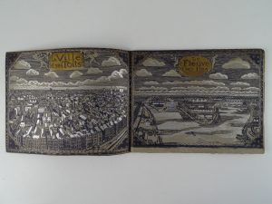 GRAND-JOUAN (Jules-Félix) - Nantes la Grise. Ses vingt-huit ponts - Nantes ; Chez l’auteur et Charles Boite imprimeur, 1923 - 1 volume In-4° oblong broché - Couvertures lithographiées et rehaussées d’or et d’argent (la 1ère avec très...