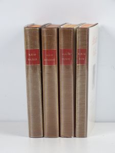 éditeur chagrin havane sous jaquettes papier pour 2 d’entre eux et rhodoïds - Dos lisses ornés et titrés or - Têtes orangées - Très bon état de l’ensemble.