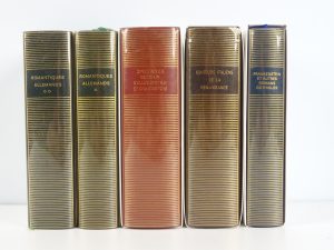 [LA PLÉIADE] - [Ensemble de 5 volumes In-12° :] [COLLECTIF] - Conteurs Italiens de la Renaissance - [COLLECTIF] - Romantiques Allemands (tomes I et II) - [COLLECTIF] - Frankenstein et autres romans gothiques - [COLLECTIF] - Spectacles curieux...