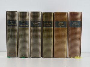 la Pléiade, 1982 à 1998 - Reliures éditeur chagrin bleu, vert sapin ou havane sous rhodoïds et jaquettes papier ou emboîtages carton illustrés (jaquette manquante pour le volume de Maupassant) - Dos lisses ornés et titrés or - Têtes orangées ou bleues - Très bel état.