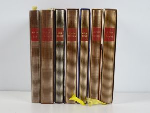Pléiade, 1980 à 2014 - Très nombreuses illustrations in et hors texte - Reliures éditeur chagrin havane (marine pour l’album de Beauvoir) sous rhodoïds et emboîtages illustrés (les emboîtages cartonnés gris des albums Giono et Gide manquants) - Dos lisses ornés et titrés or - Très bel état de l’ensemble.
