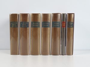 Bibliothèque de la Pléiade, 1989 à 2017 - Reliures éditeur chagrin havane ou marine sous rhodoïds et emboîtages carton illustrés (manquant pour le tome I de Gracq) - Dos lisses ornés, titrés et tomés or - Têtes orangées (blanche pour l’album) - Très bel état.