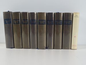 brun sous rhodoïds (et jaquette papier pour l’album) - Dos lisses ornés, titrés et tomés or - Têtes bleues (orangée pour l’album) - Quelques rhodoïds frottés - Bel état.