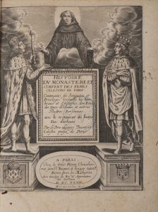 Titre-frontispice gravé par Michel Van Lochom, offrant les portraits en pied de Charles V, fondateur du couvent de Paris, et de Louis, Duc d'Orléans.