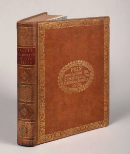 blond de l'époque, dos lisse orné, pièce de titre basane rouge, plats encadrés d'un filet et d'une large roulette dorés, avec marque de prix dorée au centre, double file doré aux coupes, roulette aux chasses, tranches dorées (2 coins frottés, petits accrocs aux plat inf., certains cahiers brunis).