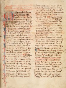 Une belle initiale filigranée, à l'encre rouge et bleue, inaugure la section au f. 11r, et se prolonge tout au long de la marge interne.