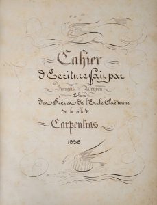 [MANUSCRIT]. — [Calligraphie]. WEYREN (François). — Cahier d'écriture fait par François Weyren, élève des Frères de l'École Chrétienne de la ville de Carpentras. 1838. — In-folio, [20] f., demi-basane havane époque, dos lisse, titre...