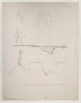 Au verso de la feuille, on trouve sept croquis : une esquisse montrant vraisemblablement le businessman, " cet homme [.... ] si occupé qu'il ne leva même pas la tête à l'arrivée du petit prince " (ch. XIII) ; une double étude ou " dessin de serpents boas ouverts ou fermés " pour le " serpent boa qui digérait un éléphant ", au regard duquel les grandes personnes, qui " ont toujours besoin d'explications ", répondent invariablement " c'est un chapeau " (ch. I) ; et au bas de cette page on trouve l'esquisse sommaire semble-t-il d'un serpent " mince comme un doigt " (ch. XVII) ; et enfin trois autres esquisses de personnages non identifiés complètent cette remarquable feuille, dont un élégant dandy.
