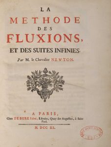 NEWTON (Isaac). — La méthode des fluxions et des suites infinies. — À Paris, chez De Bure l'aîné, 1740. — In-4, XXX p., [1] f. (errata), 148 p., [2] f. (privil. et 1 f. blanc), fig., veau havane moucheté époque, dos à 5 nerfs, titre sur...