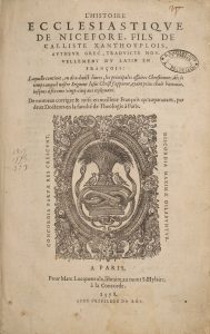 [LIVRE DU XVIe siècle]. — [RELIURE AUX ARMES]. NICEPHORE CALLISTE XANTHOPOULOS. — L'histoire ecclésiastique de Nicefore ... traduicte nouvellement du latin en françois ... — De nouveau corrigée & mise en meilleur françois qu'auparavant par...