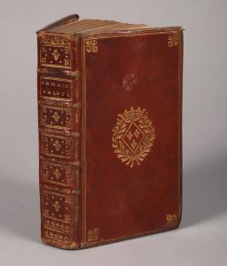 époque, dos à 5 nerfs, titre, dorés, caissons ornés de fleurs de lys en fleurons centraux et aux angles, plats encadrés d'un triple filet, avec fleurs de lys aux angles et armoiries au centre, le tout doré, roulette dorée aux bords des contreplats, tranches dorées (frottements, un coin émoussé, cahiers un peu déréglés ; rousseurs, traces d'usage).