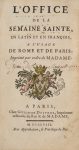 [RELIURE AUX ARMES]. — L'Office de la Semaine Sainte en latin et en françois à l'usage de Rome et de Paris. — Imprimé par ordre de Madame. — À Paris, chez Guillaume Desprez, 1758. — In-12, 723 p., [1] f. (approbation), maroquin rouge...