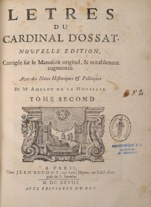 Nouvelle édition, corrigée sur le manuscrit original, & notablement augmentée. Avec des notes historiques et politiques de Mr Amelot de La Houssaye. Publiées pour la première fois en 1624, ces lettres reflètent les préoccupations du temps ; elles servirent longtemps de modèles pour la correspondance diplomatique.