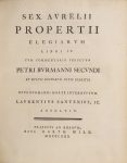 PROPERCE. — Sex. Aurelii Propertii Elegiarum libri IV, cum commentario perpetuo Petri Burmanni secundi et multis doctorum notis ineditis. — Opus Burmanni morte interruptum Laurentius Santenius, ... absolvit. — Trajecti ad Rhenum, apud. — B....