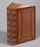 de la bouteille. — Augmenté des Navigations et Isle sonante, l'isle des Apedefres, la cresme philosophale, avec une epistre limosine et deux autres epistres à deux vieilles de différentes moeurs. — À Lyon, par Jean Martin, 1558 [i.e. Rouen, ap. 1620 ?]. — 3 parties en 1 vol. in-8, 322 pp-4 ff. n.c., 428 pp., 5 ff. n.c., 154 pp., 15 ff. n.c. peau de truie ocre brun du XIXe s., dos à 5 nerfs, titre, fleurons, filets, plats décorés d'un double encadrement de triple filet et fleurons angulaires, le tout à froid, tranches dorées (frott. superf. en tête des mors, restaurations au titre et sur qq. coins de pages, accroc réparé touchant qq lettres f. Ee1, déch. sans perte restaurée f. Ll 5, f. Tt 1).