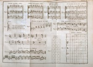 ROUSSEAU (Jean-Jacques). — Dictionnaire de musique. — À Paris, chez la Vve Duchesne, 1768. — In-4, IX p., [1] f. (errata), 548 p., [1] f. (approb.), 13 planches de musique gravée, veau havane marbré et glacé époque, dos à 5 nerfs, pièce...