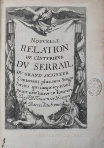 TAVERNIER (Jean Baptiste). — Nouvelle relation de l'intérieur du serrail du Grand Seigneur, contenant plusieurs singularitez ... — À Paris, chez Gervais Clouzier, 1675. — In-4, [10] f. (dont le titre-frontispice gravé sur cuivre), 277 p.,...