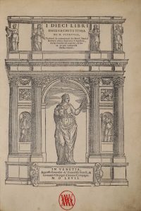 Seconde édition, corrigée, de la traduction en italien donnée par Daniele Barbaro en 1556 ; les corrections ont été réalisées en collaboration avec Andrea Palladio, qui y a ajouté de nouvelles figures, portant le nombre d'illustrations à 121 compositions.