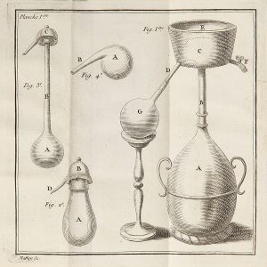 Deuxième édition augmentée, illustrée d’une vignette de titre et 4 planches dépliantes : 3 d’instruments (alambics, fourneaux...) et une rare planche d’alphabet alchimique.