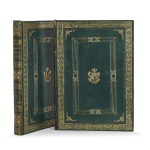 Exemplaire sur papier vélin très fort, luxueusement relié aux armes du Baron Edward Tunno, membre du Parlement anglais au début du XIXe siècle, dont la bibliothèque sur l’art et l’architecture fut fameuse.