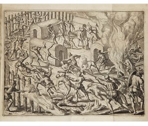 Ce recueil comprend une carte et 15 jolies gravures sur cuivre (rites religieux, scènes de bataille, construction de vaisseaux...) réparties ainsi dans les cinq ouvrages :
