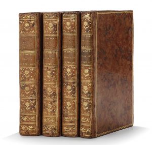 GUYS (PIERRE AUGUSTIN). — VOYAGE LITTÉRAIRE DE LA GRÈCE, ou Lettres sur les grecs, anciens et modernes, avec un parallèle de leurs moeurs. — Paris, Veuve Duchesne, 1783. — 4 vol., veau porphyre, dos lisse orné, pièces de titre et de...
