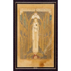 HUYSMANS (JORIS-KARL). — LA CATHÉDRALE. — Paris, P.-V. Stock, 1898. — In-12, maroquin janséniste lie de vin, dos à nerfs, encadrement intérieur du même maroquin, doublure ornée du frontispice en couleurs de Pierre Roche sur parchemin...