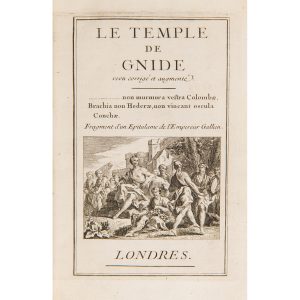 [MONTESQUIEU]. — LE TEMPLE DE GNIDE REVU, CORRIGÉ ET AUGMENTÉ. — Londres, (1742). — In-12, veau marbré, triple filet doré, guirlande aux angles, dos lisse orné, tr. marbrées (Rel. de l’époque).
