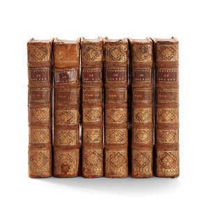 POLYBE. HISTOIRE, nouvellement traduit du grec par Dom Vincent Thuillier avec un commentaire ou un corps de science militaire […] par M. de Folard. — Paris, Gandouin, Giffart et Armand, 1727-1730. — 6 vol. in-4, veau marbré, dos à nerfs...