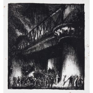 • Les Campagnes hallucinées : frontispice, 6 lithographies hors-texte et figures gravées sur bois dans le texte, certaines à pleine page, de Brangwyn. .Tirage à 290 exemplaires numérotés ; l’un des 240 sur papier vélin d’Arches (n° 153)..